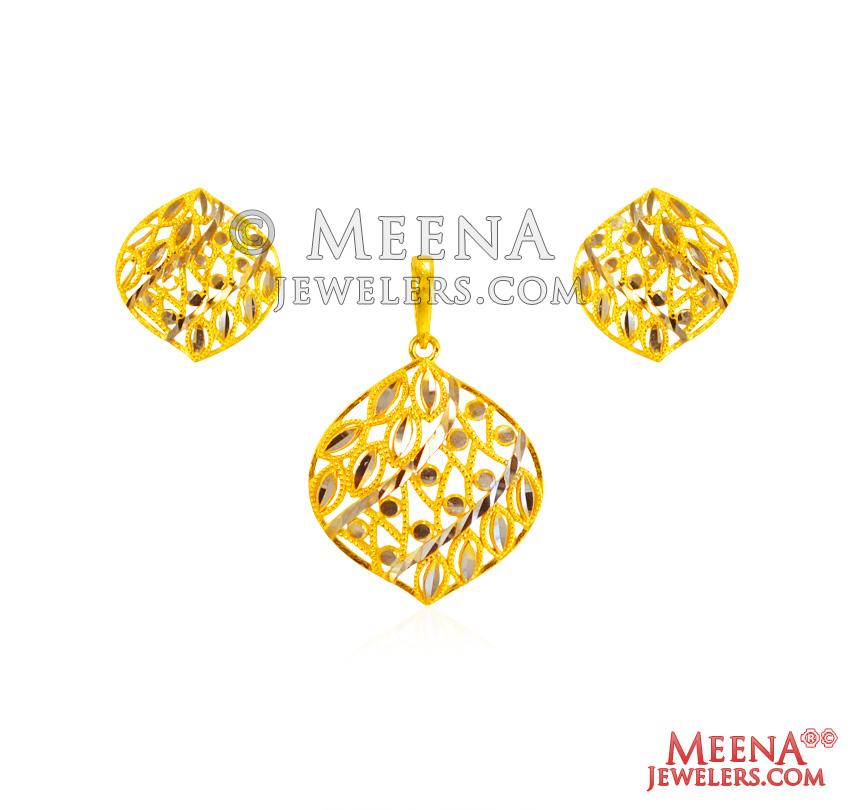 22Kt Gold Fancy TwoTone Pendant Set - Click here to buy online - 1,488 only..
