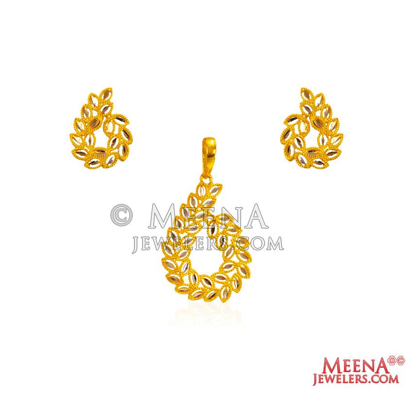 22Kt Gold Fancy TwoTone Pendant Set - Click here to buy online - 1,063 only..