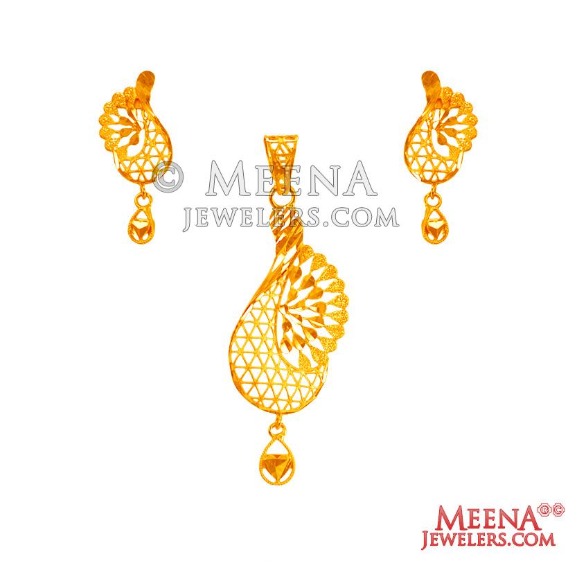 22Kt Gold Fancy Pendant Set - Click here to buy online - 1,356 only..