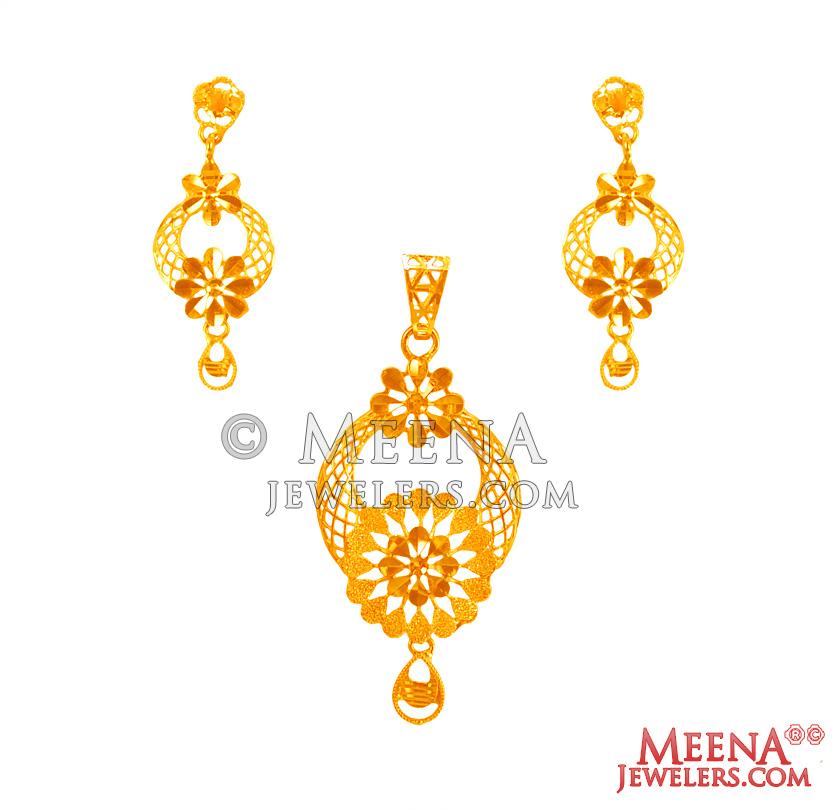 22k Gold Pendant Set  - Click here to buy online - 1,438 only..