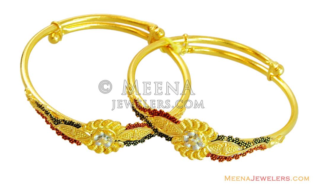 22K Tricolor Baby Bangles (Pair) (CODE : BjBa14409)