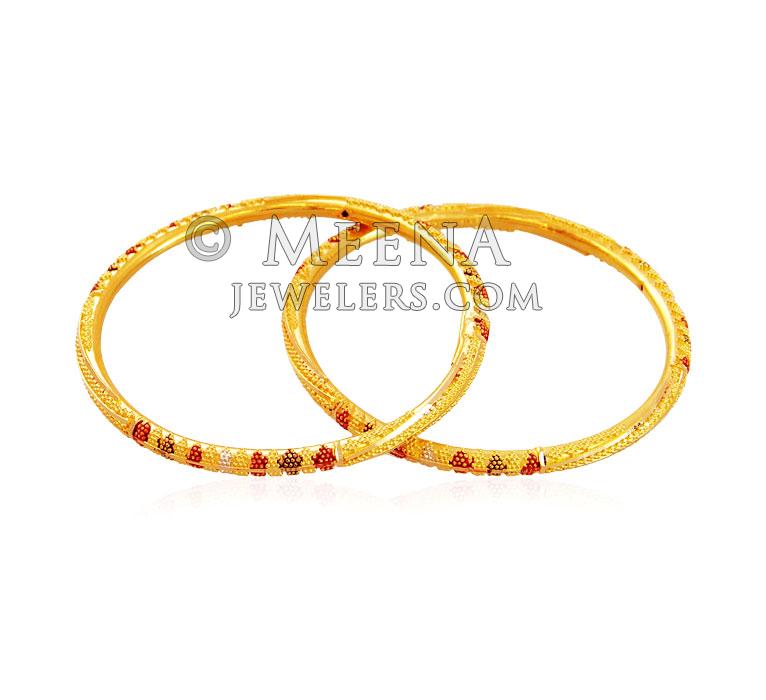 22K Tricolor Kids Bangle (2 Pcs) ( Baby Bangles )