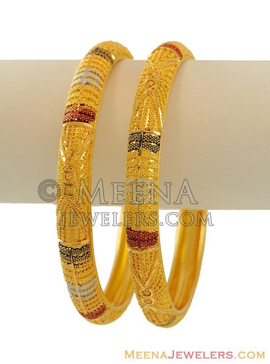 22Kt Multicolor Gold Bangles(2 pcs) (CODE : BaGo7538)