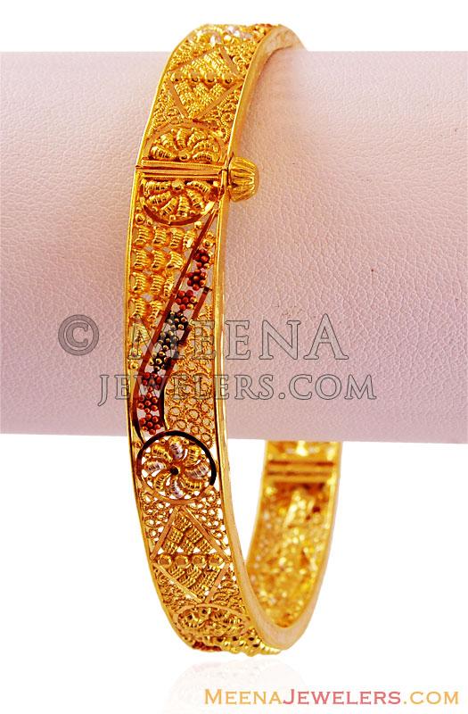 22k gold kadas (1pc) designed with traditional filigree work, machine cuts in combination with beautiful Three tone color work.