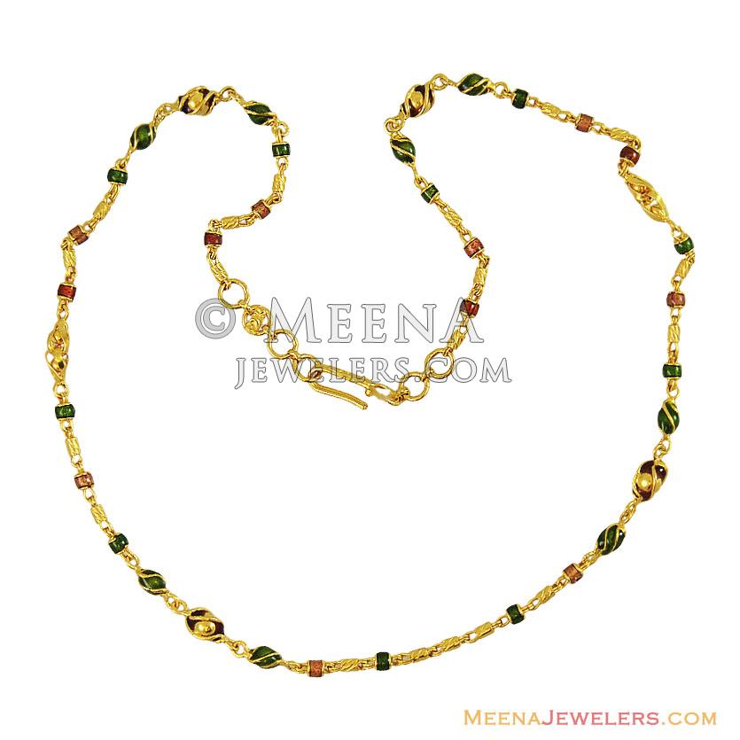 22K Gold Fancy Chain finishes with multi color enamel paint on it.