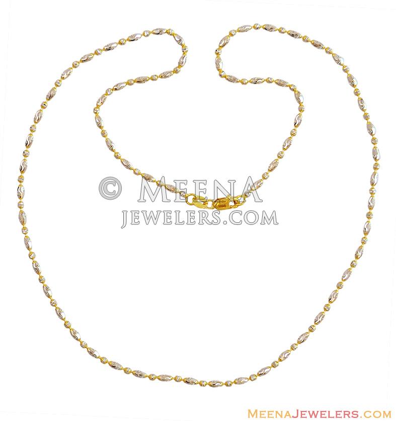 22Kt Gold Ladies Fancy Rice Balls Chain (18 inches) teemed together with two tone rhodium based finish along with high shine finish.