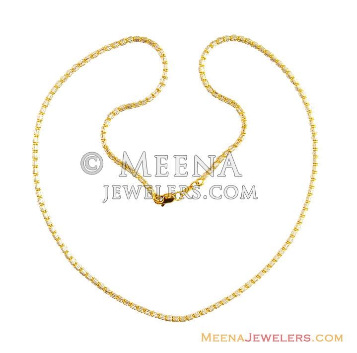22k gold designer ladies chain designed with rhodium based two tone finish as well as frost finish.