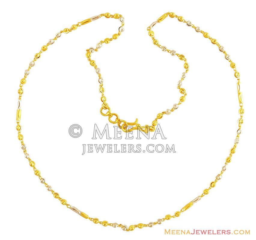 22k gold chain designed with yellow gold and white gold balls beaded alternately.