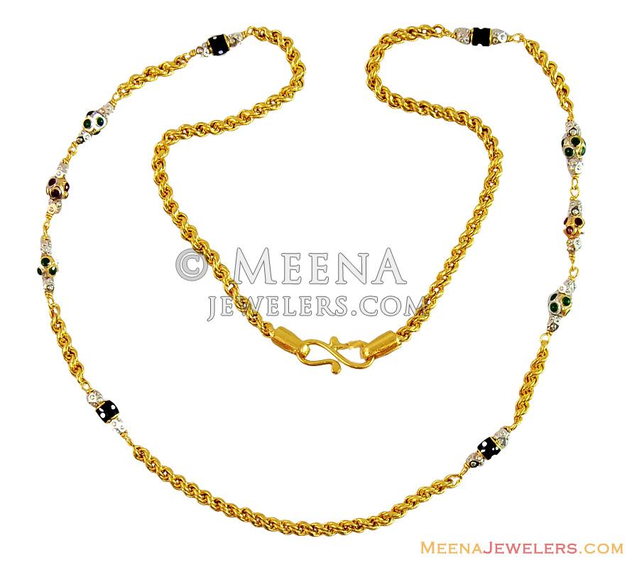 22Kt Gold Fancy Ladies Chain teemed together with gold balls in an alternative pattern with rope chain. Chain is designed with meenakari color work and two tone finish.