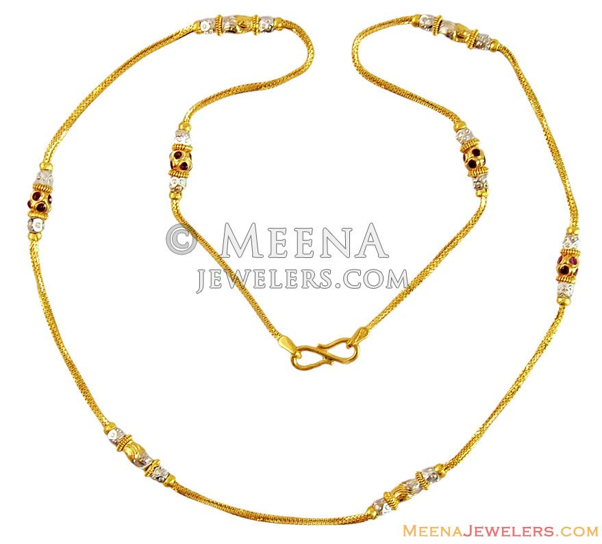 22Kt Gold Fancy Ladies Chain teemed together with gold balls in an alternative fashion finished in two tone rhodium finish with meena color work in shine finish.
