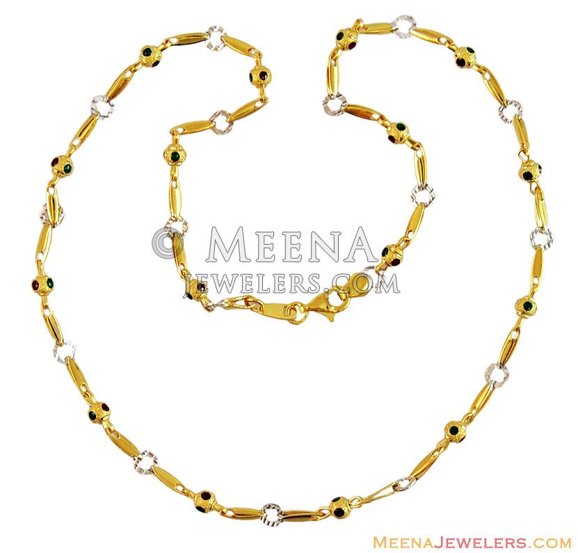 22k Fancy Meena Balls Chain  ( 22Kt Gold Fancy Chains )