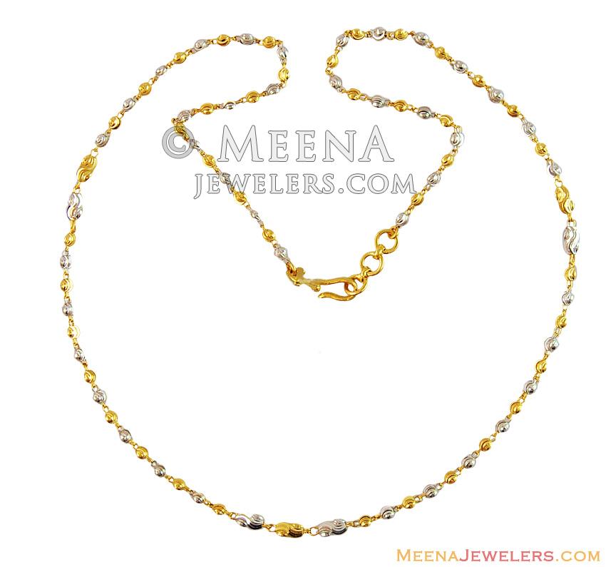 22Kt Gold Fancy Ladies Chain teemed together with gold balls finished in two tone rhodium finish with machine cuts in shine finish.