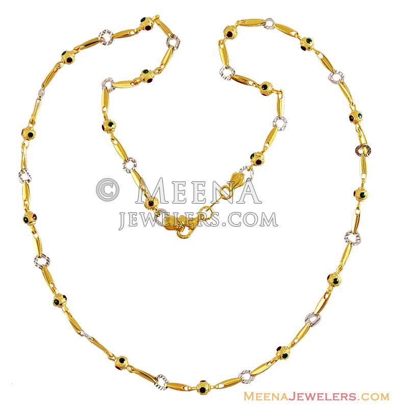 22Kt Gold Semi Precious Stone Chain - Click here to buy online - 3,093 only..