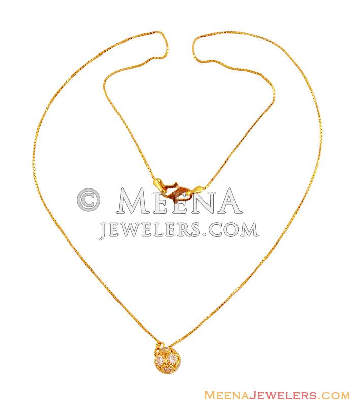 22Kt Gold Chain designed with a Cubic Zircon Gold ball with shine finish.