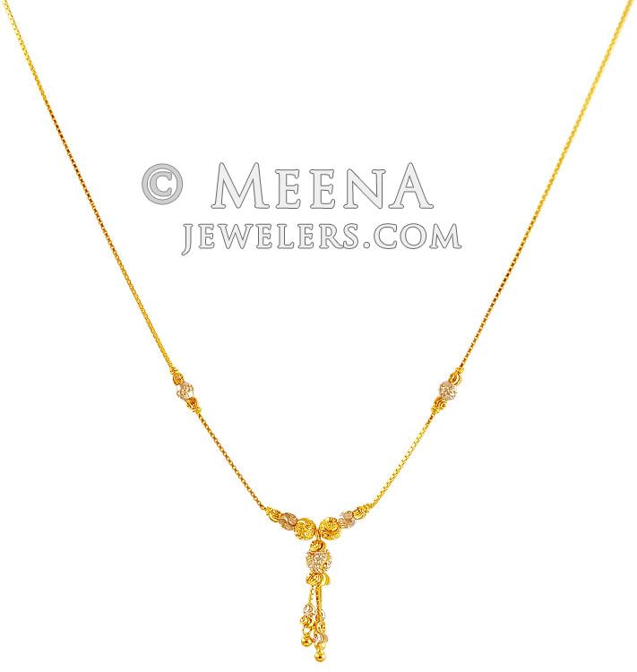 22Kt Gold Dokia style chain. Chain is excellently designed with gold balls teamed together at the center with laser cuts and two tone rhodium finish.