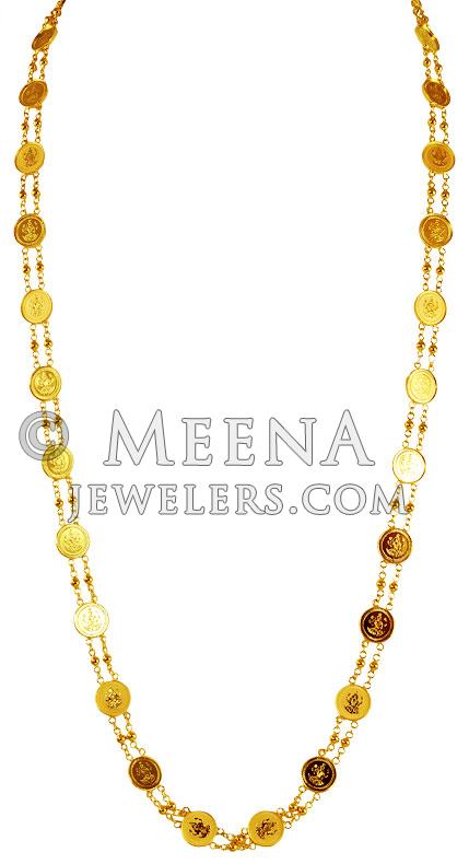 22K Gold Ginni chain. Chain is designed in an alternate pattern with linked Ginni (Gold coins) and Beaded Gold balls. Embossed Laxmi Jee on a Lotus flower adds traditional touch to it.