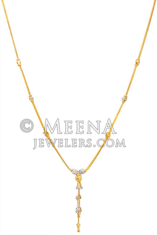 22K Gold Ladies Two Tone Chain. Dokia Chain is designed with gold balls and box style chain in alternate pattern. Hanging gold balls with gold chain at the center adds beauty to it.