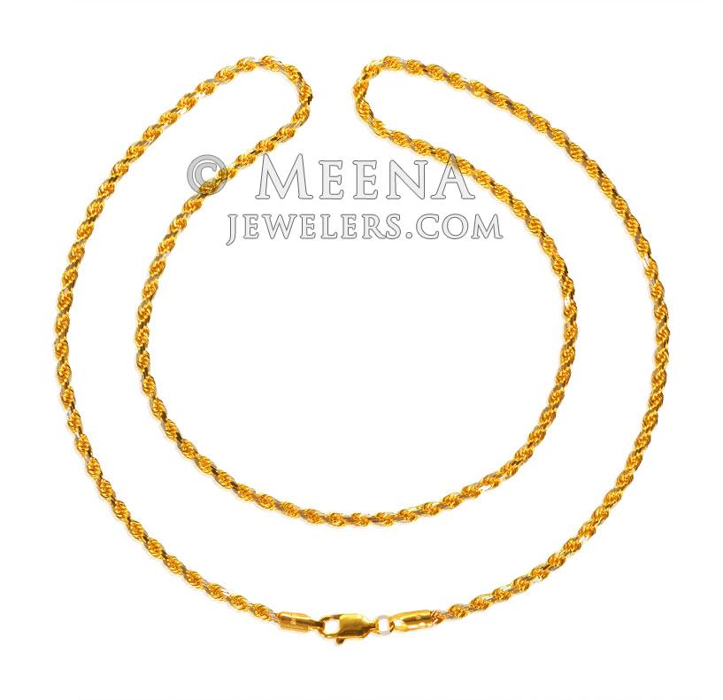 22K Gold Two Tone  Rope Chain ( 22Kt Gold Fancy Chains )