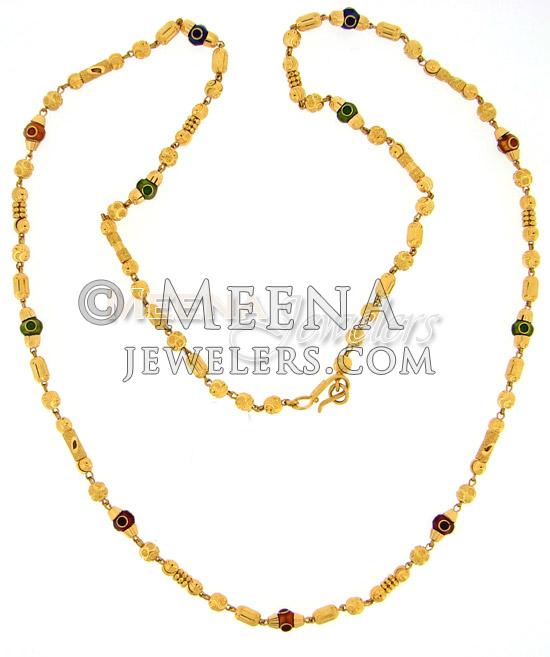 22 Kt Gold Long Chain with Meenakari. This chain in handmade and the exquisite Meenakari gives it a very 22Kt Indian Jewelry look. The Enamel / Meenakari balls are connected with Plain Gold balls with laser cut shining.