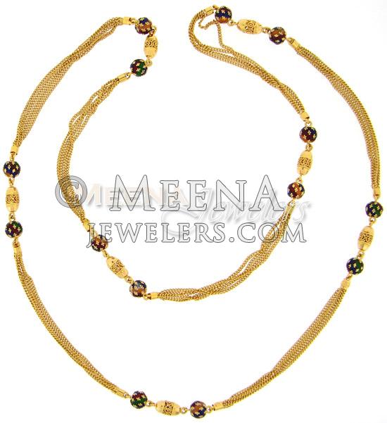 22 Kt Gold Long Chain with Meenakari. This chain in handmade and the exquisite Meenakari gives it a very 22Kt Indian Jewelry look.The Length of Enamel balls are connected with a bunch of chains.