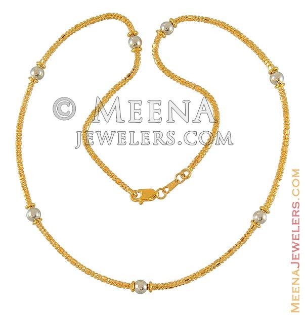 22Kt Gold Fancy 2 tone Chain with white rhodium polish gold balls and cylinders on it.