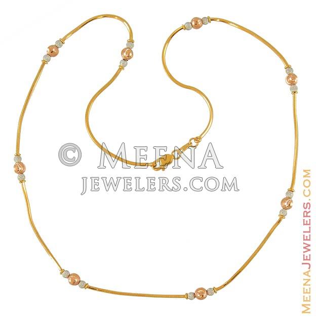 Three Tone Ball Chains (18 Inches Customized) ( 22Kt Gold Fancy Chains )