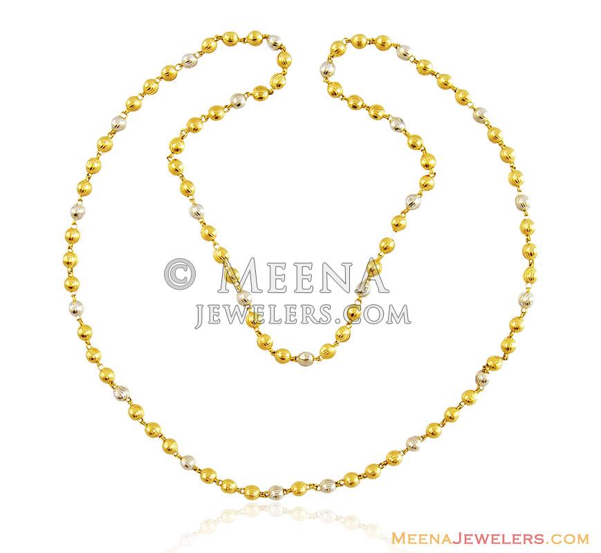 Long Ladies Two Tone Ball Chain 22k ( 22Kt Long Chains (Ladies) )