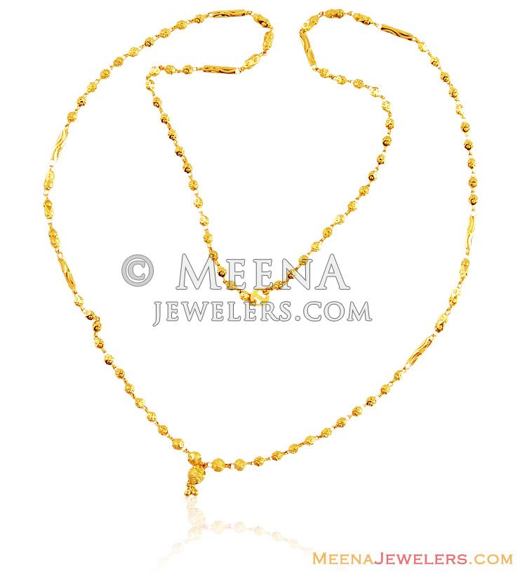 22K Gold Ladies Long Chain teemed together with gold balls. Chain is finished with fine machine cuts in shine finish. Chain has small gold ball hanging at the bottom for a traditional look.