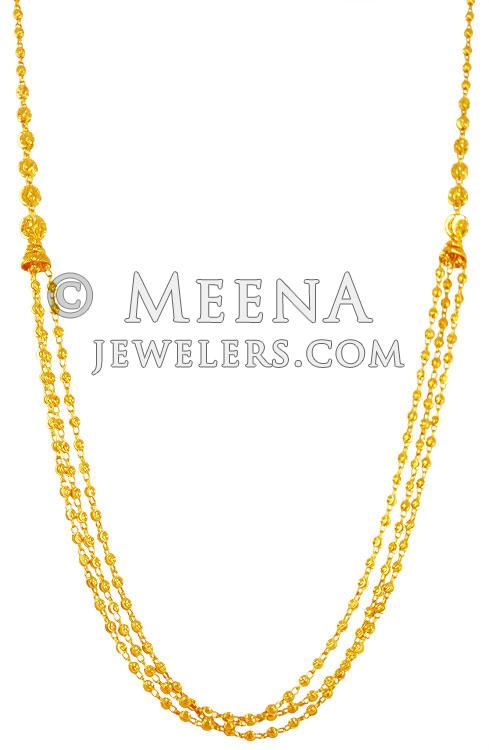 22K Gold layers chain for ladies. Chain is designed with beaded gold balls placed in an alternative pattern in 3 layers. Machine cuts and light frost finish adds beauty to it.