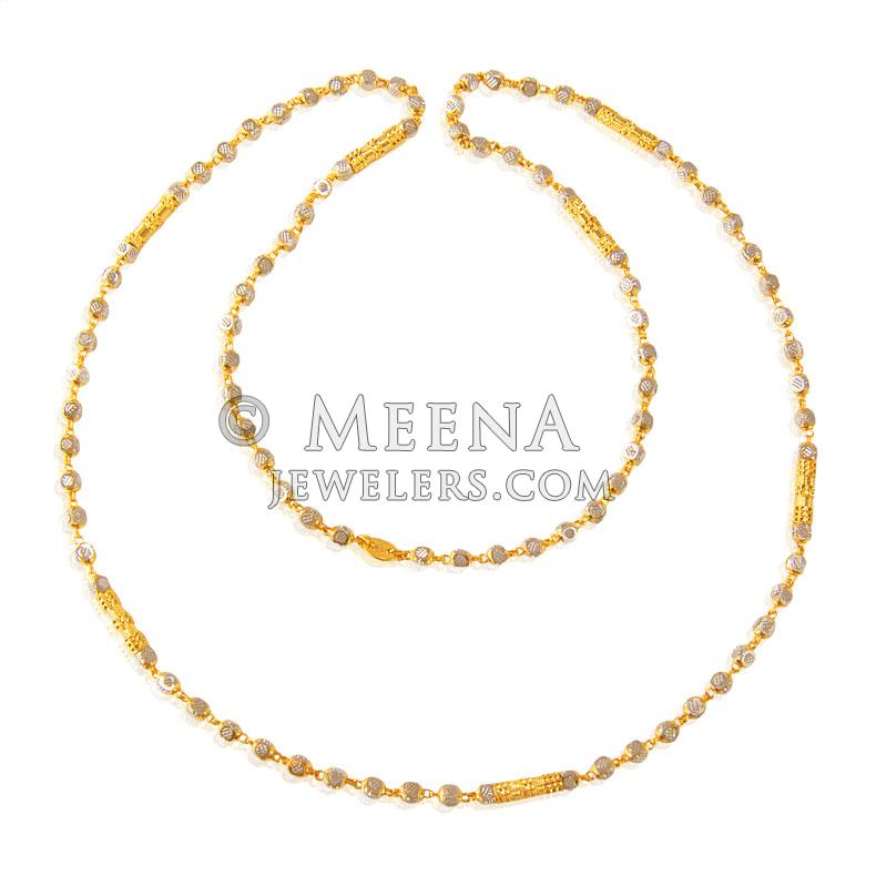 22K Gold Two Tone ladies chain is designed with beaded Gold balls with two tone rhodium finish.