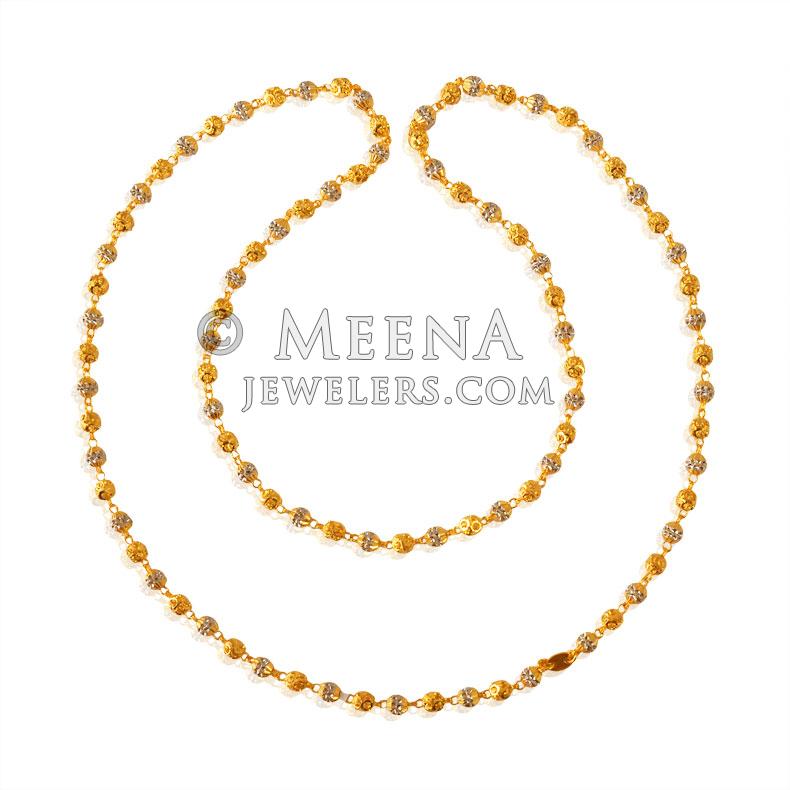 22K Gold Two Tone ladies chain is designed with beaded Gold balls with two tone rhodium finish.Diamond cut design adds beauty to it.