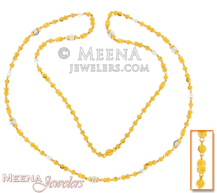 22Kt gold long chain with gold balls and diamond cuts. The chain has gold cylinders and balls joined with strong chain ends.
