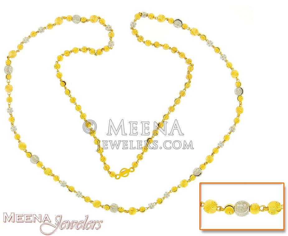 22Kt gold long chain with white gold balls and diamond cuts. The chain has gold balls joined with strong chain ends.