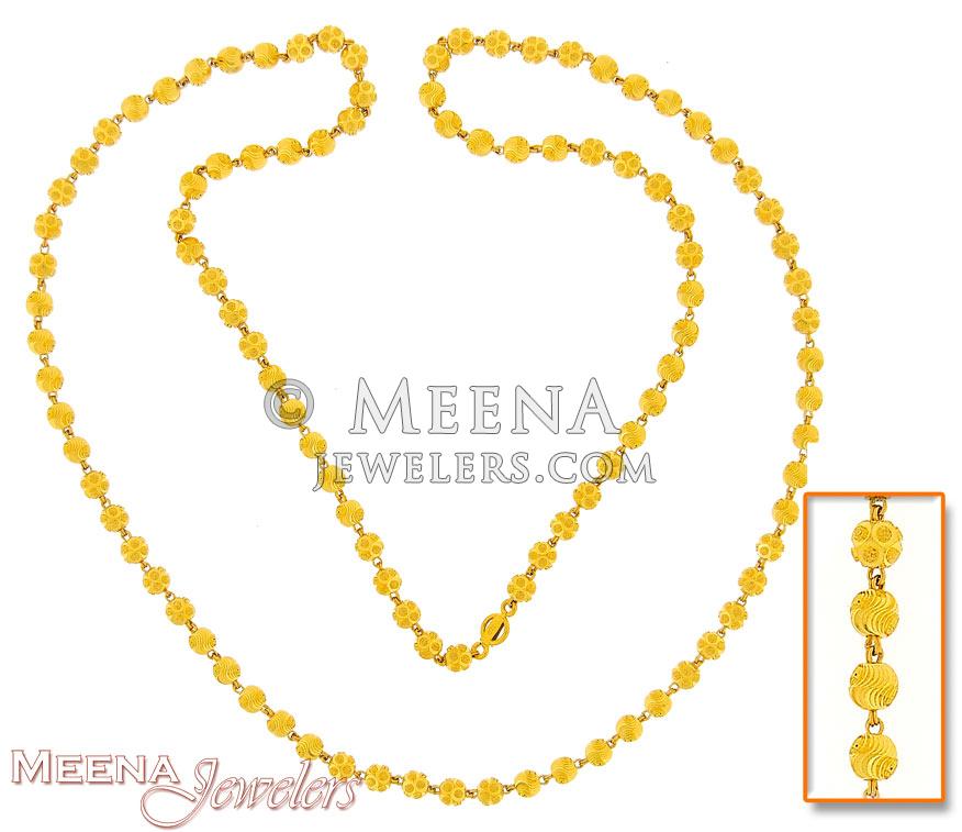 22Kt gold long chain with gold balls, frosty finish and diamond cuts. chain has gold balls joined with strong chain ends.
