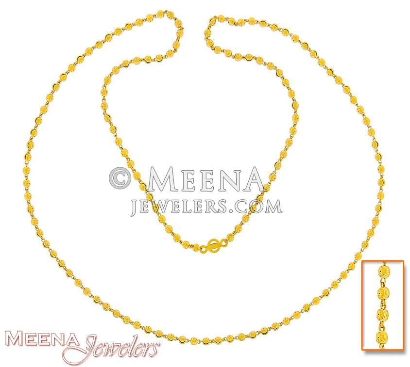 22Kt gold long ladies chain with gold balls and diamond cuts. Chain has gold balls joined with strong chain ends.