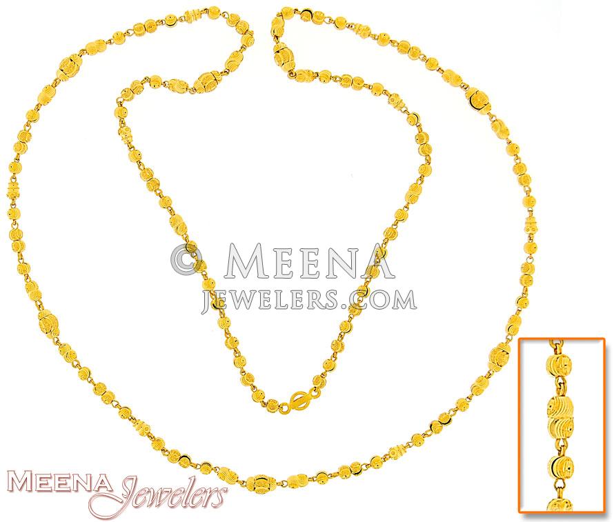 22K gold long chain with gold balls and diamond cuts. The chain has gold cylinders and balls joined with strong chain ends.
