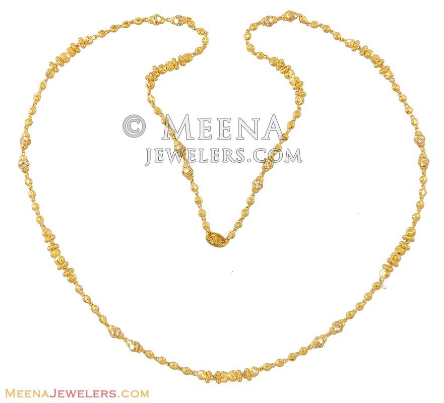 Ladies Gold Designer Chain beautifully beaded with Gold Balls and Diamond Cuts all through the Chain joined with strong chain ends. Few Gold Balls are studded with Cubic Zircon.