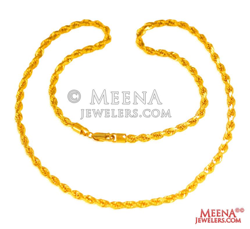 22K Gold 22 Inches long Rope chain for Men's is designed with fine machine cuts which add shine to it.