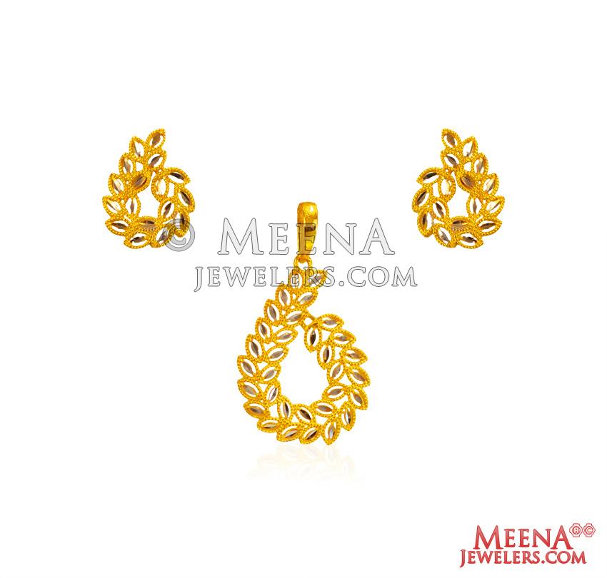 22Kt Gold Fancy TwoTone Pendant Set - Click here to buy online - 1,063 only..