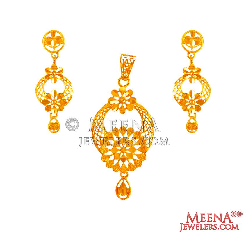 22k Gold Pendant Set  - Click here to buy online - 1,438 only..