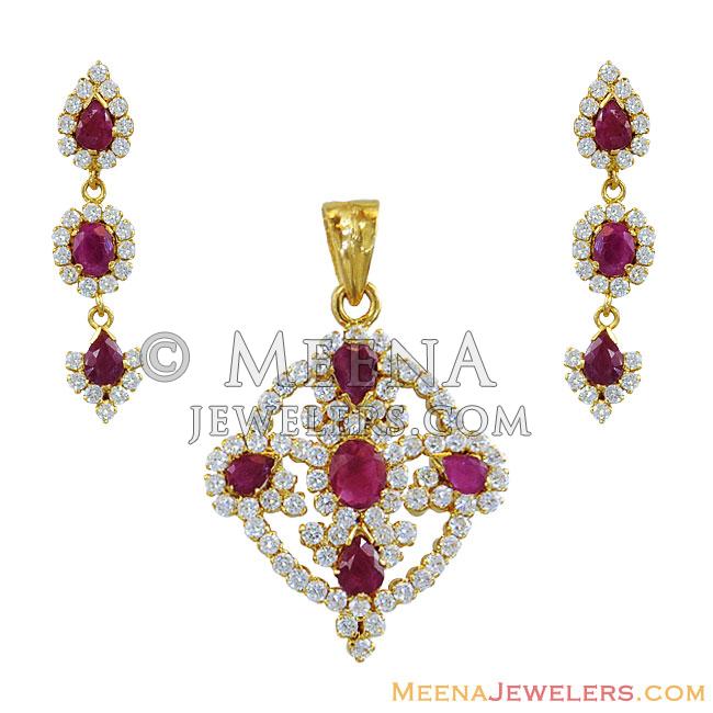 22K Precious Ruby and CZ P Set