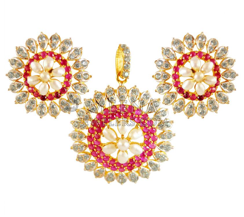 22K Gold  Zircons Pendant Set - Click here to buy online - 2,359 only..