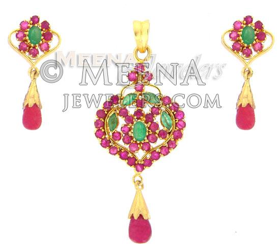 22 Kt Gold Precious Stone Pendant Sets ( Precious Stone Pendant Sets )