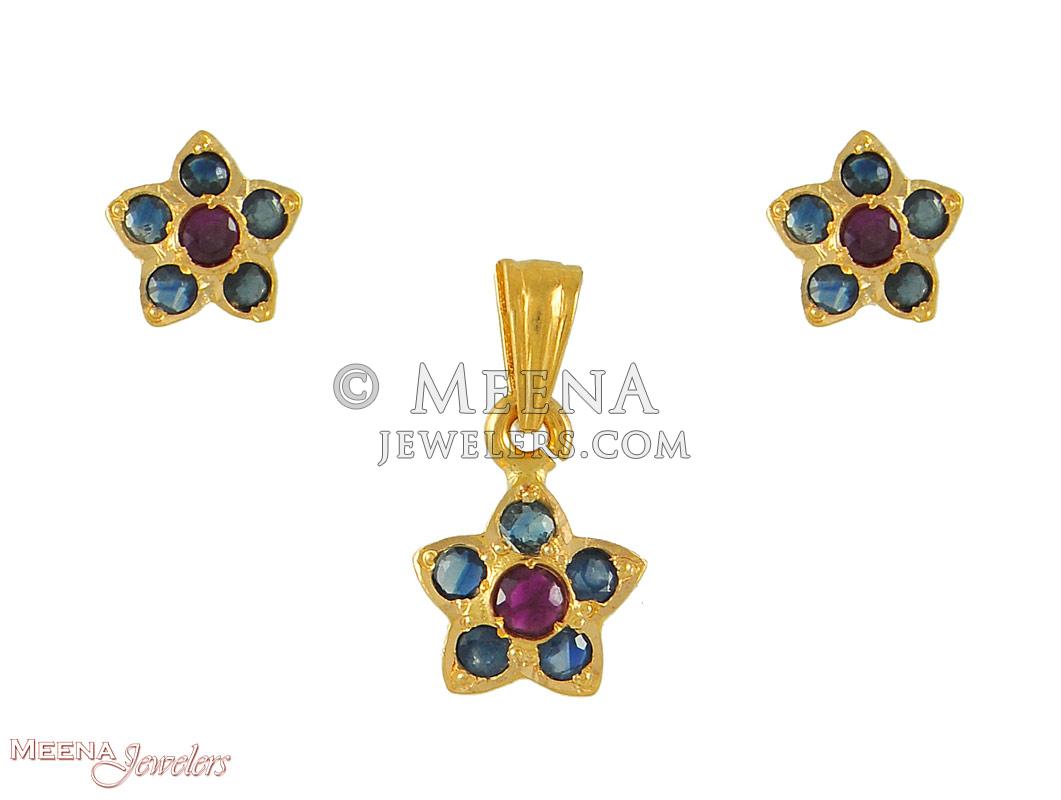 22Kt Sapphire , Ruby Pendant Set ( Precious Stone Pendant Sets )