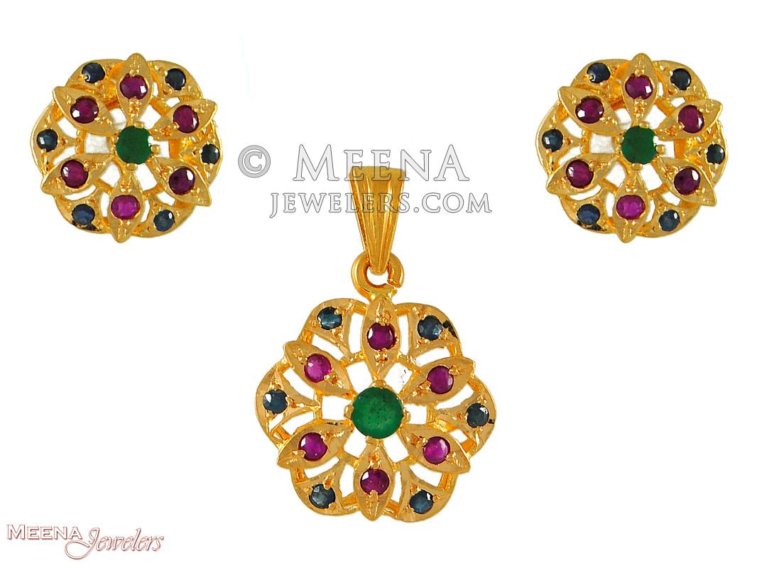 22k Gold Precious Stone Pendant Set - Click here to buy online - 2,531 only..