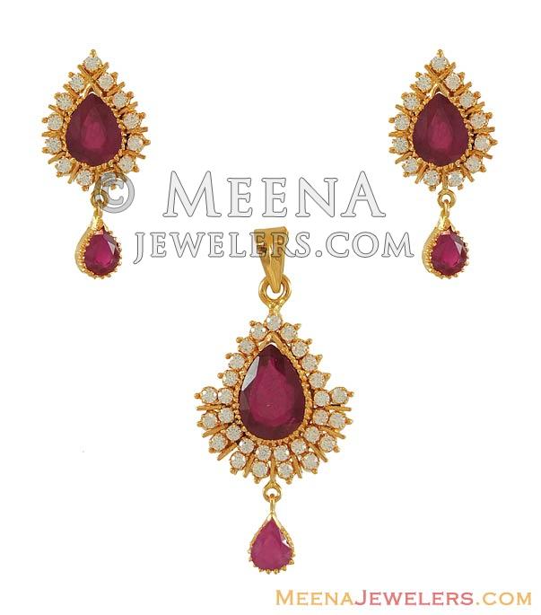 Ruby and Cz Pendant and Earring set ( Precious Stone Pendant Sets )