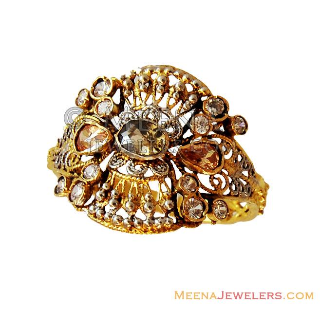 22K Antique Cz Two Tone Ring  ( Ladies Rings with Precious Stones )