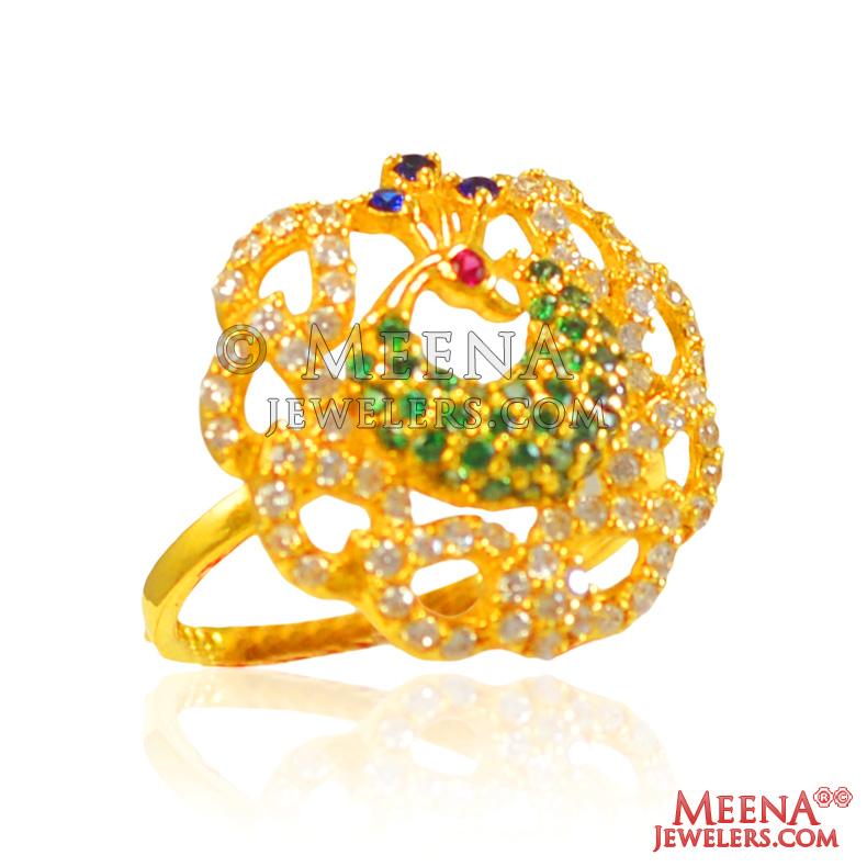 22Kt Gold CZ and Colored Stone Ring ( Ladies Rings with Precious Stones )