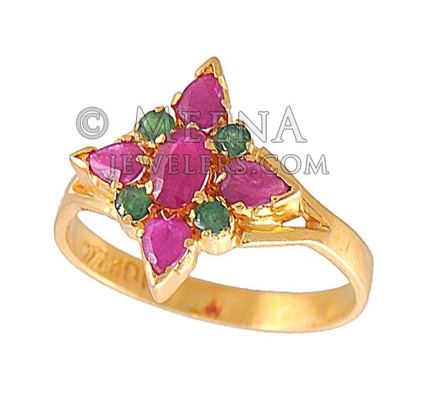 22k Gold Ring with Emerald and Ruby ( Ladies Rings with Precious Stones )
