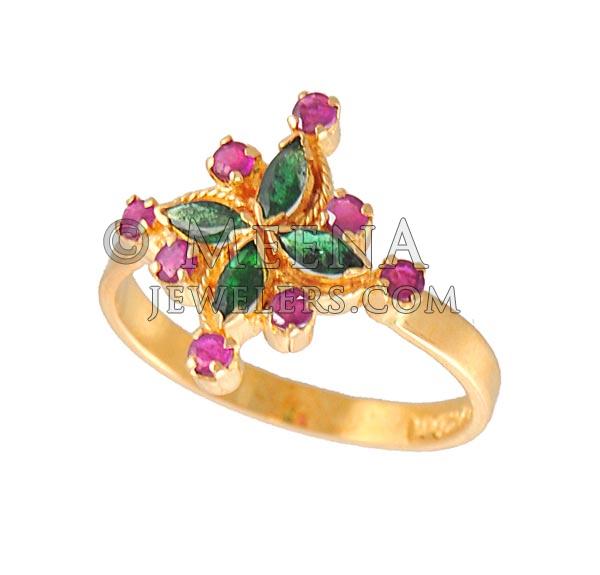 22k Gold Ring with Emerald and Ruby ( Ladies Rings with Precious Stones )